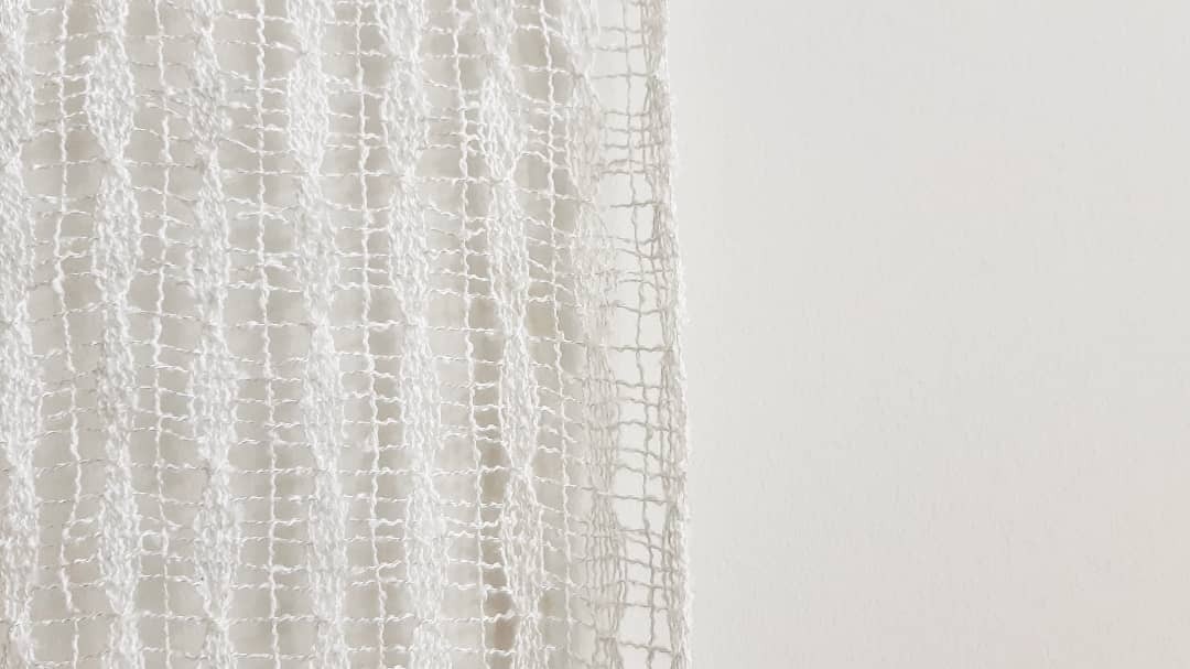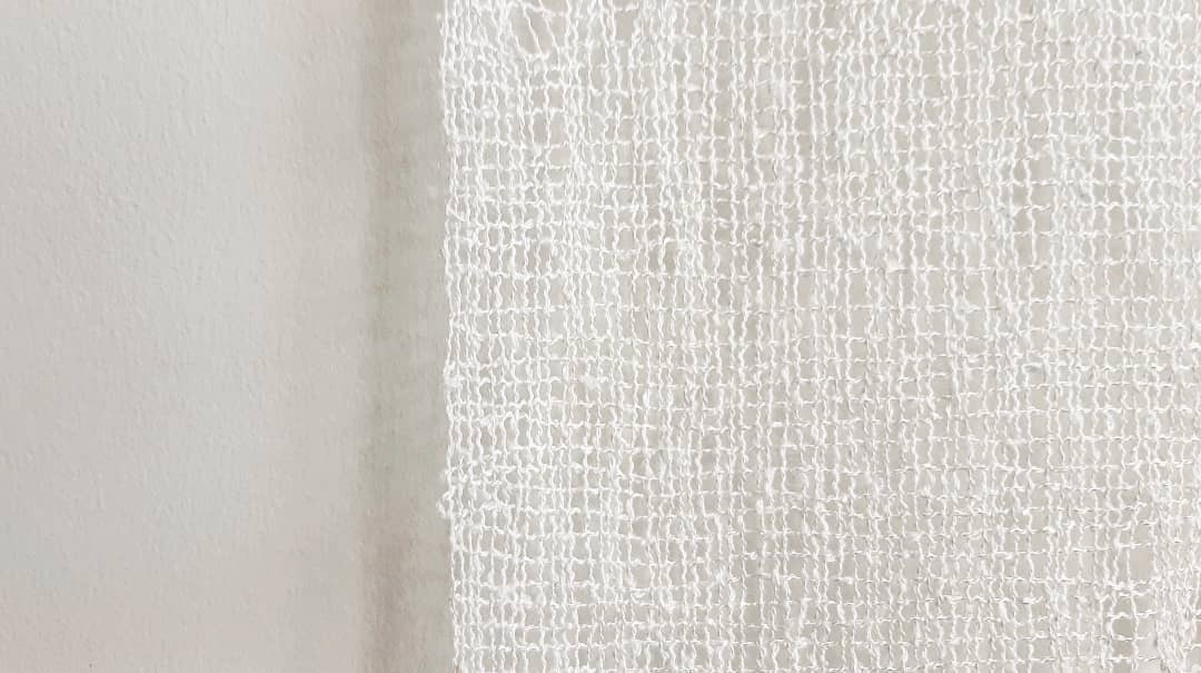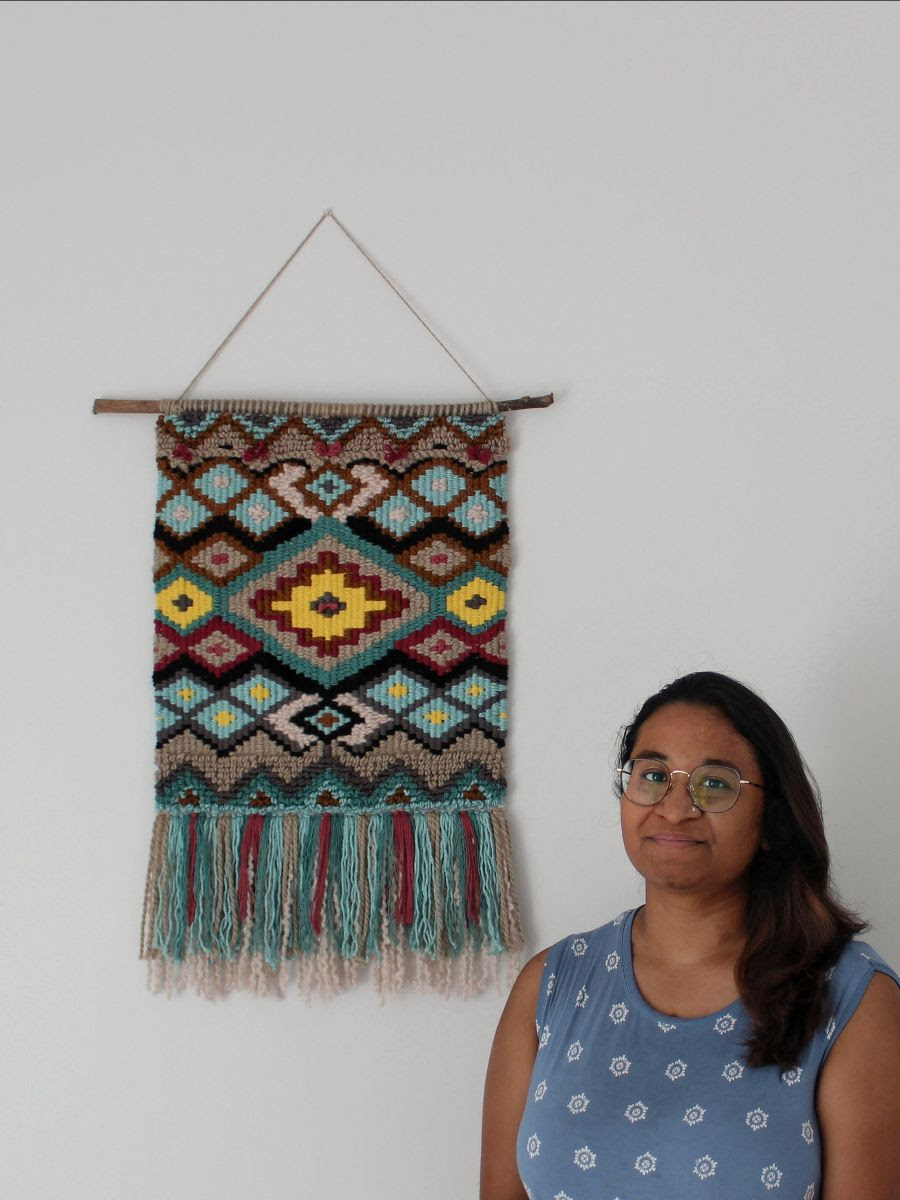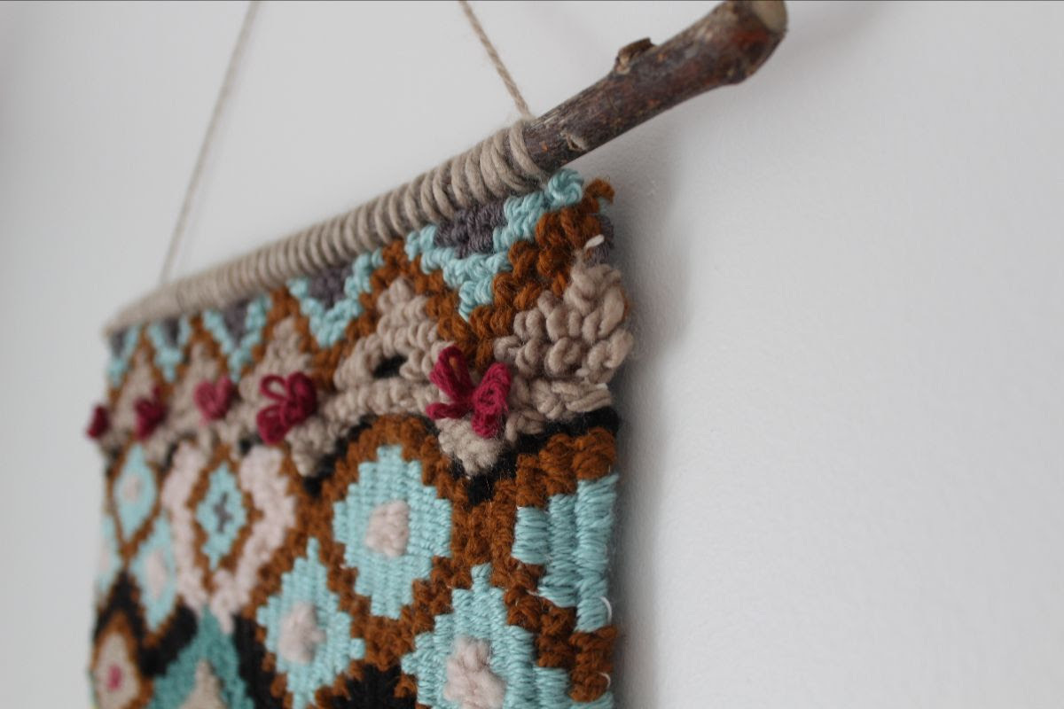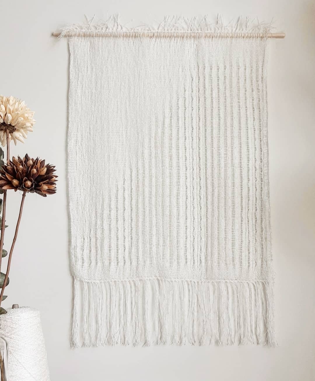 11" X 20.5" cotton, wool, wooden dowel (sold)